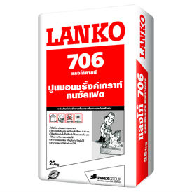 LANKO 706 ปูนนอนชริ้งค์เกราท์ ชนิดทนซัลเฟต เป็นปูนทรายผสมสำเร็จชนิดไม่หดตัวทนทานต่อน้ำทะเลและซัลเฟต ประกอบด้วยซีเมนต์คัดพิเศษ ทรายคัดขนาด และสารเคมีผสมเพิ่ม ไม่ผสมผงโลหะ