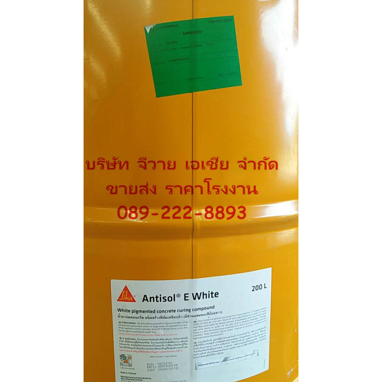 น้ำยาบ่มคอนกรีต ชนิดสร้างฟิล์มเคลือบผิว(มีส่วนผสมของสีย้อมขาว) 200 ลิตร