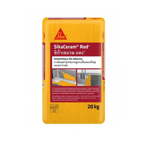 SikaCeram Red+ เป็นกาวซีเมนต์ปูกระเบื้องสำเร็จรูปแบบส่วนผสมเดียว ซึ่งมีส่วน